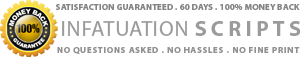This program is delivered by video, audio and e-book formats so you can consume it in your preferred medium on any of your devices. Your order is backed by my 60-Day, No-Questions-Asked, 100% Satisfaction Guarantee. If you are not 100% satisfied with your purchase, simply contact support@infatuationscripts.com within 60 days for a full refund.